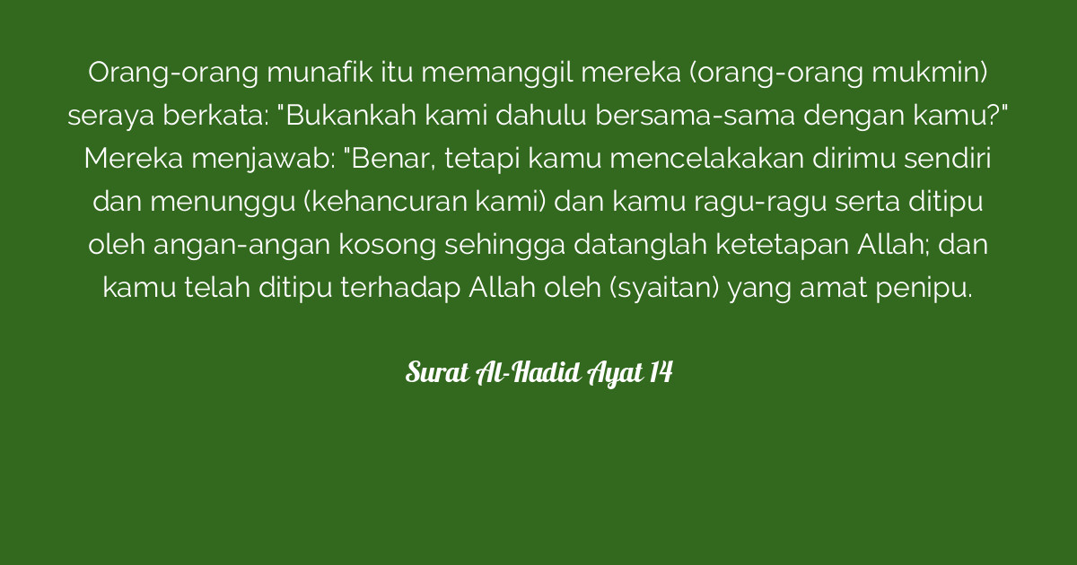 Pasalnya, munafik merupakan salah satu sifat tercela yang sangat tidak terpuji. Contoh soal hadis tentang amal shalih al qur'an hadits kelas 6 orang yang beramala shaleh akan mendapatkan kebaikan dari allah swt. Dan langsung saja, simak berikut ini daftar kumpulan hadits tentang munafik yang shahih lengkap dalam tulisan arab dan terjemahan bahasa. Apabila menerima amanah, orang munafik selalu. Di dalam hadits lain disebutkan bahwa ciri orang munafik adalah: Yang paling populer diriwayatkan oleh imam bukhori dan imam muslim yaitu ada tiga, (1) apabila ia berbicara maka ia berdusta, (2) apabila ia berjanji maka ia ingkari, dan (3) apabila ia dipercaya maka ia berkhianat. Diriwayatkan abi dzar jundub bin junadah dan abu abdurrahmanmua'adz bin jabal ra. Karena apa yang mereka katakan tidak sama dengan apa. (hadis ini diriwayatkan oleh al bukhari, nomor hadis 34). Berbeda dengan makhluk yang lain, manusia oleh allah swt dibekali ide benak, biar dapat membedakan antara sifat baik serta kurang baik. Sebagai contoh terkadang seorang teman yang. Kumpulan hadits tentang orang munafik yang sahih dalam bacaan arab, latin dan artinya lengkap, simak penjelasannya agar kita terhindar dari sifat munafik yang tercela ini. Seorang mulim sejati tentu sangat mewaspadai penyakit munafiq ini, hanya saja.